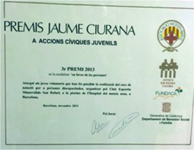 Els voluntaris del Club Esportiu Minusvàlids Sant Rafael van ser distingits, el passat 3 de novembre, amb el tercer premi en la XXVIII edició dels Premis Jaume Ciurana a l'actuació…
