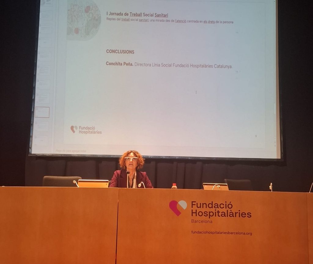 En su intervención, Conchita Peña, directora de la Línea Social de la Fundació Hospitalàries Catalunya, subrayó que la jornada “representa una oportunidad para compartir experiencias, aprender conjuntamente y fortalecer la colaboración, con el objetivo de afrontar los retos de futuro en el acompañamiento a las personas y construir, de manera conjunta, el trabajo social sanitario del mañana”.