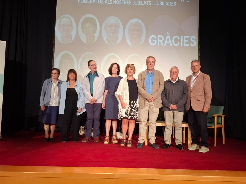 Després d’aquesta lliçó de vida, va tenir lloc l’homenatge a les persones jubilades de 2025, on es van projectar diapositives amb el recorregut pels anys de dedicació de cadascuna d’elles al Centre, i on es van viure moments molt emotius, quan companys i companyes els hi van dedicar unes paraules d’agraïment. Podeu veure aquesta part de l’acte aquí.